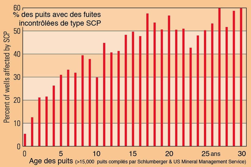 Or, les puits se dégradent avec le temps. Une compilation de 15 000 puits conventionnels montre que 5% d’entre eux fuient dès leur mise en service, mais la proportion augmente à 50% à l’intérieur des 20 premières années. « Au Québec pour 31 puits forés depuis 2008 pour les gaz de schiste, la proportion de puits avec des fuites a été de 19 sur 31, plus de 60% des puits. La différence confirme ce que plusieurs chercheurs avancent : les problèmes d’ingénierie, notamment dans la cimentation des nouveaux puits avec fracturation et extension horizontale de 1000 m et plus, vont se manifester de façon bien plus fréquente et beaucoup plus préoccupante qu’avec les puits dans les gisements classiques. »